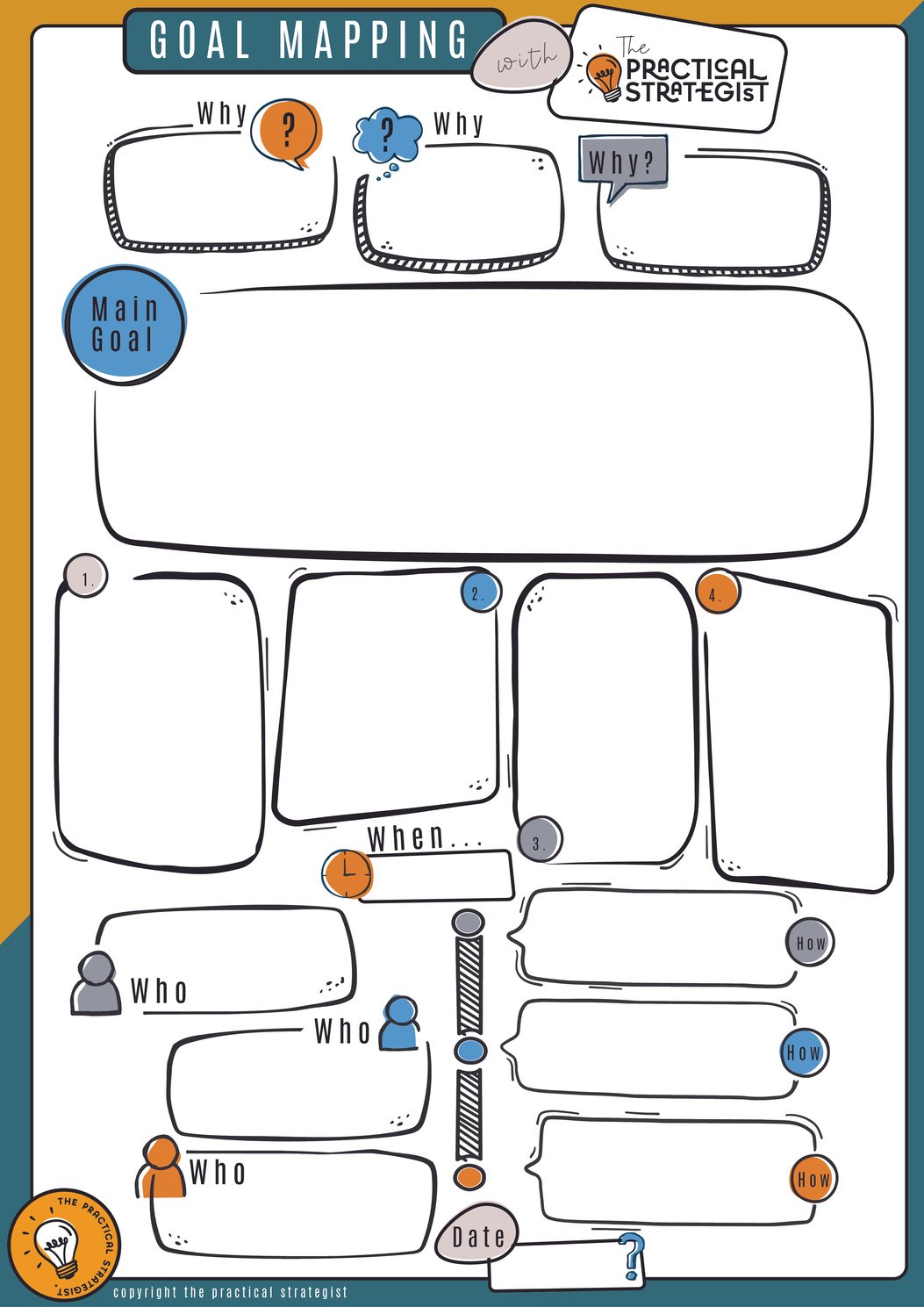 An A3 Goal or Life mapping printed template to create their map within the workshop and take home.
